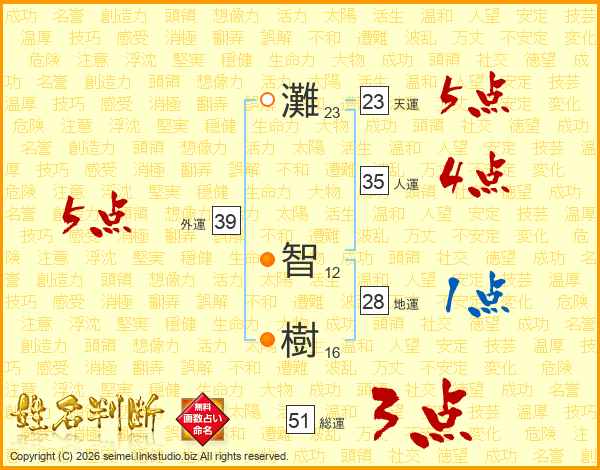 灘(23画) 智(12画)樹(16画)