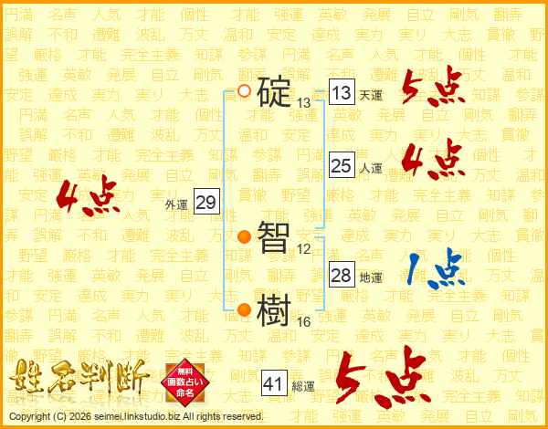 碇智樹さんの総運は41画の5点!
