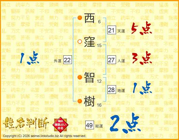 西窪智樹さんの天運は21画の5点!