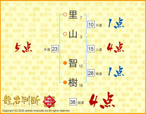 里山智樹さんの総運は38画の4点!