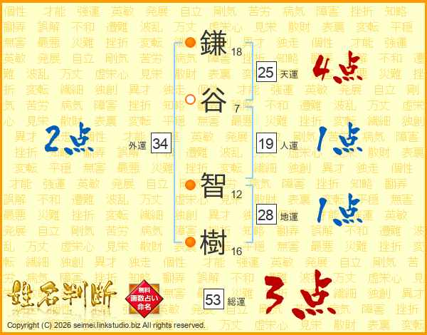 鎌谷智樹さんの天運は25画の4点!