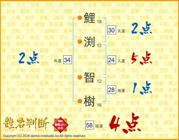 鯉(18画)渕(12画) 智(12画)樹(16画)