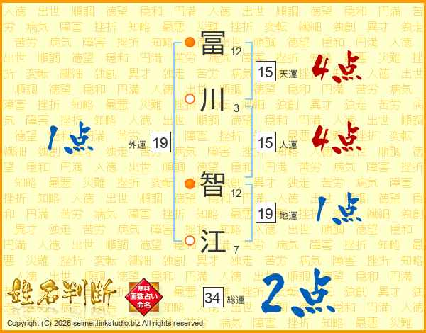 冨(12画)川(3画) 智(12画)江(7画)