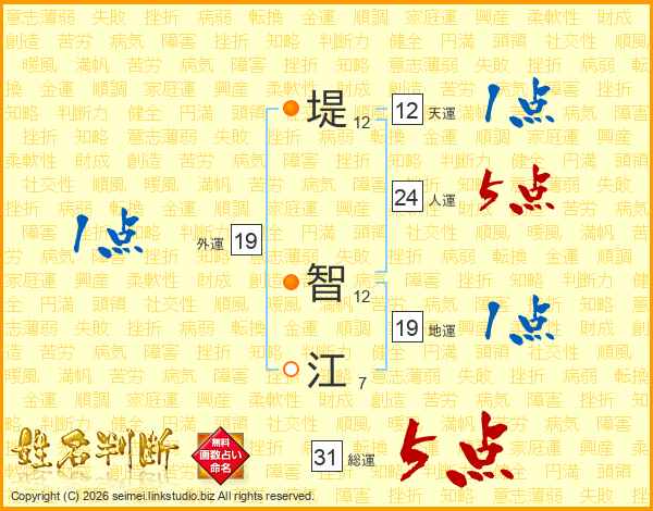 堤(12画) 智(12画)江(7画)