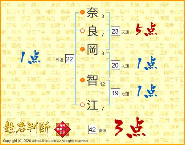 奈良岡智江さんの天運は23画の5点!