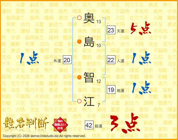奥(13画)島(10画) 智(12画)江(7画)