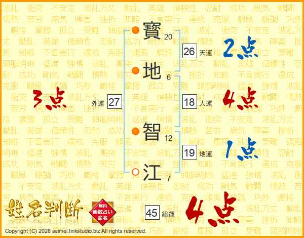 寳地智江さんの天運は26画の2点!