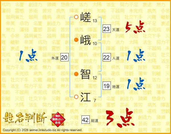 嵯峨智江さんの人運は22画の1点!