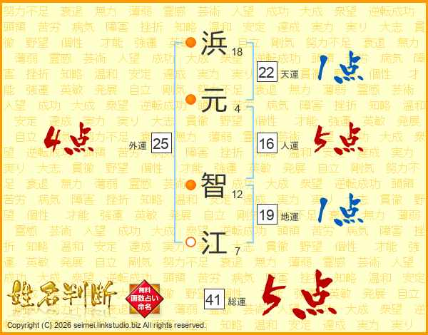 浜(18画)元(4画) 智(12画)江(7画)