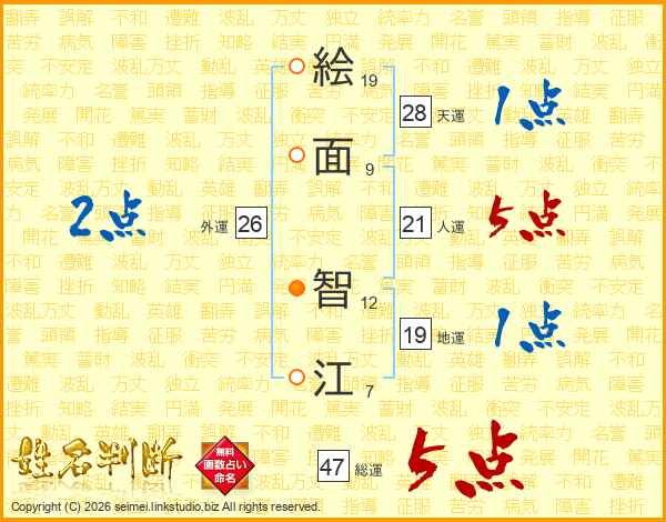 絵面智江さんの総運は47画の5点!