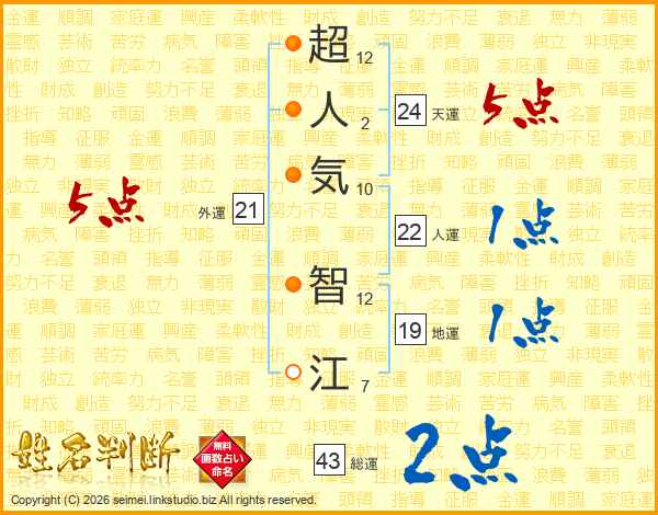 超人気智江さんの総運は43画の2点!