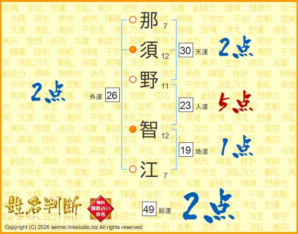 那須野智江さんの人運は23画の5点!