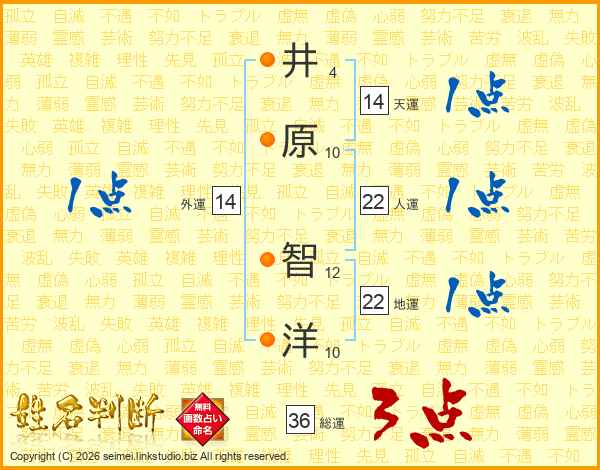 井原智洋さんの総運は36画の3点!