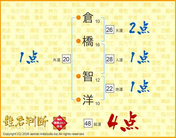 倉橋智洋さんの天運は26画の2点!