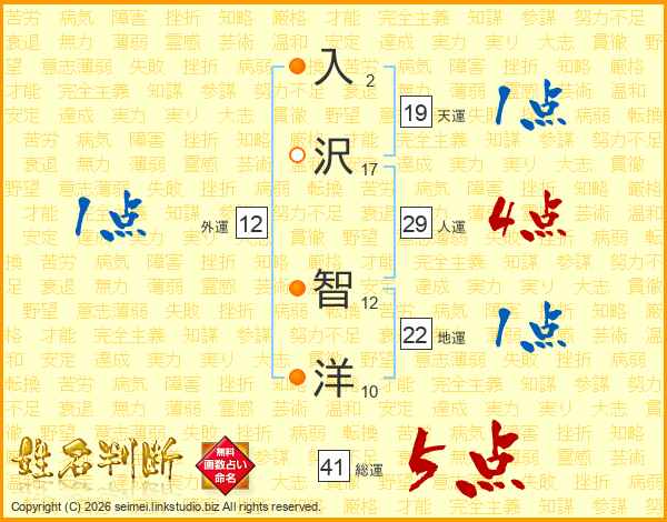 入沢智洋さんの天運は19画の1点!