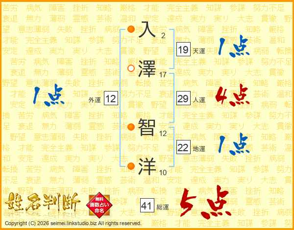 入澤智洋さんの人運は29画の4点!