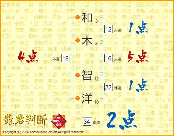 和(8画)木(4画) 智(12画)洋(10画)