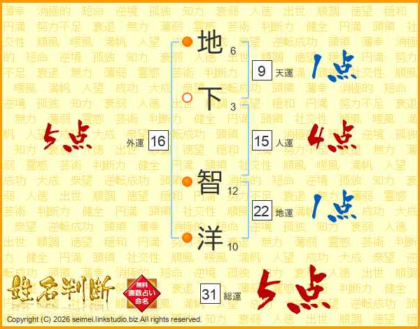 地下智洋さんの総運は31画の5点!