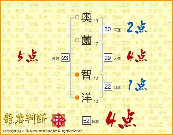 奥薗智洋さんの総運は52画の4点!
