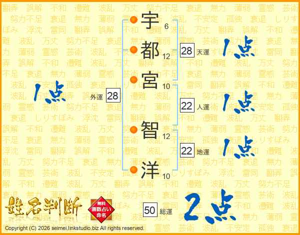 宇都宮智洋さんの天運は28画の1点!