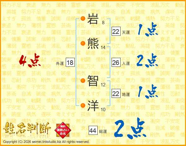 岩(8画)熊(14画) 智(12画)洋(10画)