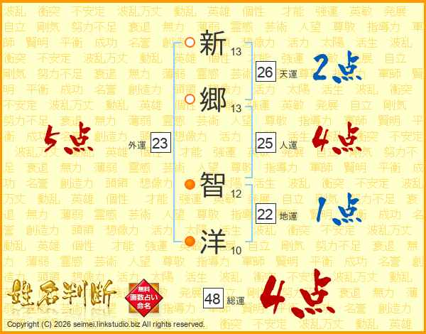 新郷智洋さんの天運は26画の2点!