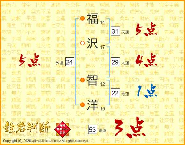福沢智洋さんの総運は53画の3点!
