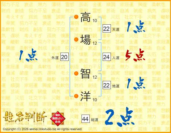 高(10画)場(12画) 智(12画)洋(10画)