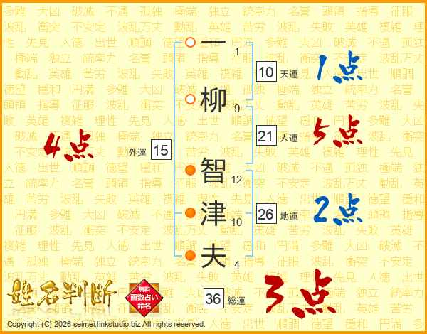 一柳智津夫さんの地運は26画の2点!