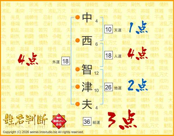 中西智津夫さんの地運は26画の2点!