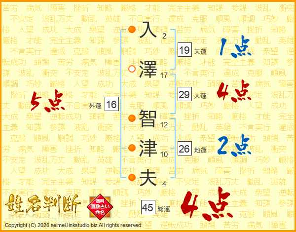 入澤智津夫さんの総運は45画の4点!