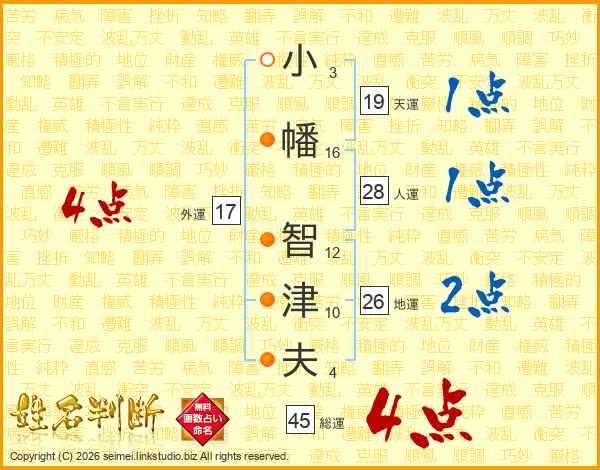 小幡智津夫さんの外運は17画の4点!