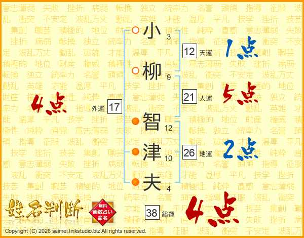 小柳智津夫さんの総運は38画の4点!