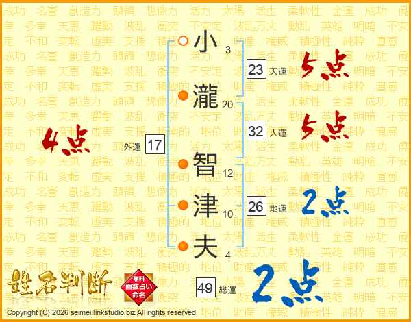 小瀧智津夫さんの総運は49画の2点!