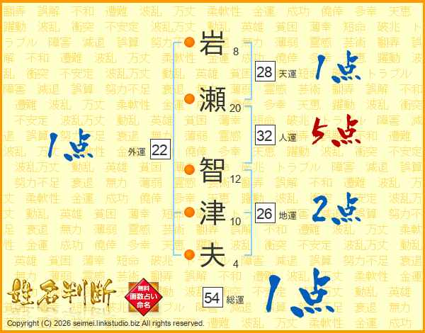 岩瀬智津夫さんの総運は54画の1点!