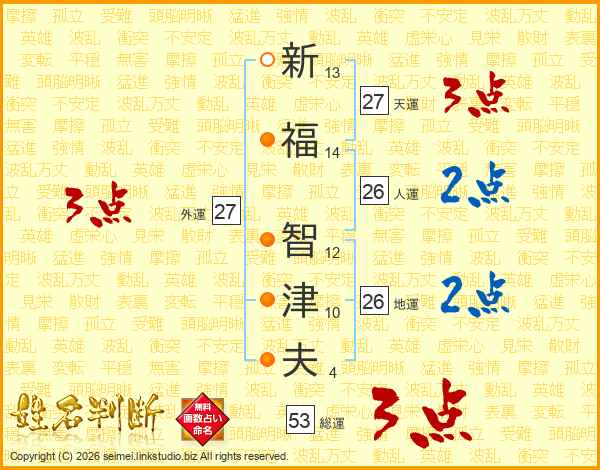 新(13画)福(14画) 智(12画)津(10画)夫(4画)
