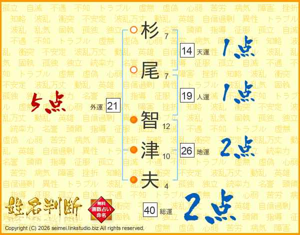 杉尾智津夫さんの外運は21画の5点!
