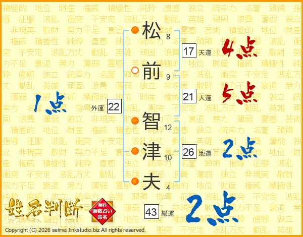 松前智津夫さんの総運は43画の2点!