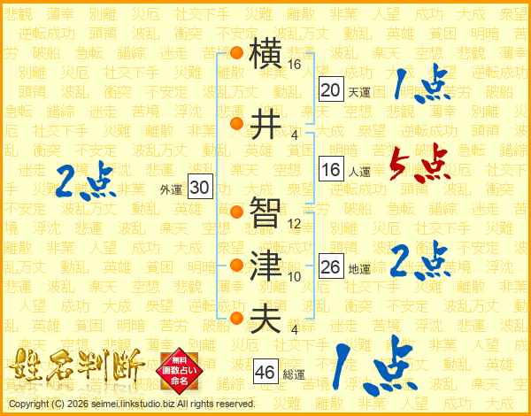 横井智津夫さんの総運は46画の1点!