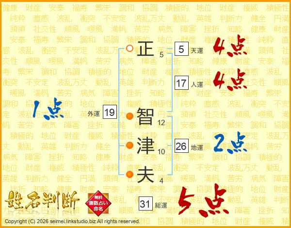 正智津夫さんの総運は31画の5点!