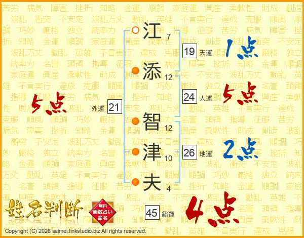 江添智津夫さんの総運は45画の4点!