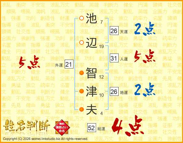 池辺智津夫さんの天運は26画の2点!