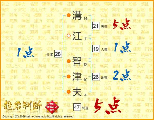 溝(14画)江(7画) 智(12画)津(10画)夫(4画)