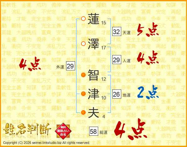 蓮澤智津夫さんの総運は58画の4点!