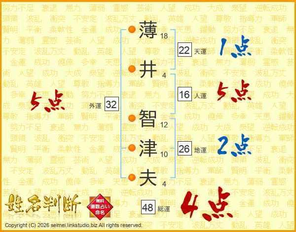 薄井智津夫さんの総運は48画の4点!