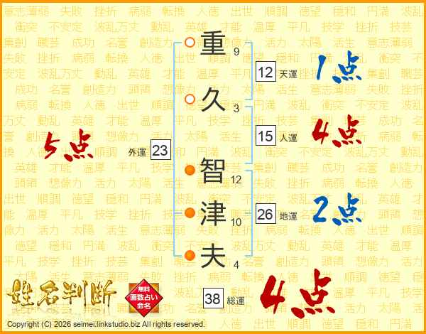 重久智津夫さんの総運は38画の4点!