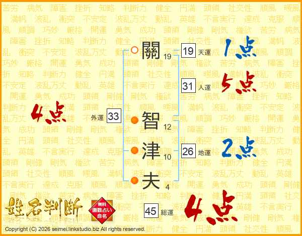 關智津夫さんの地運は26画の2点!
