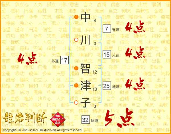 中川智津子さんの総運は32画の5点!