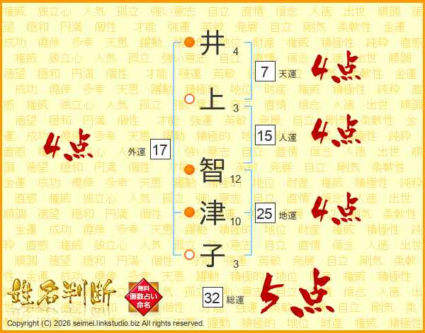井上智津子さんの外運は17画の4点!