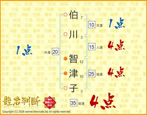 伯川智津子さんの総運は35画の4点!